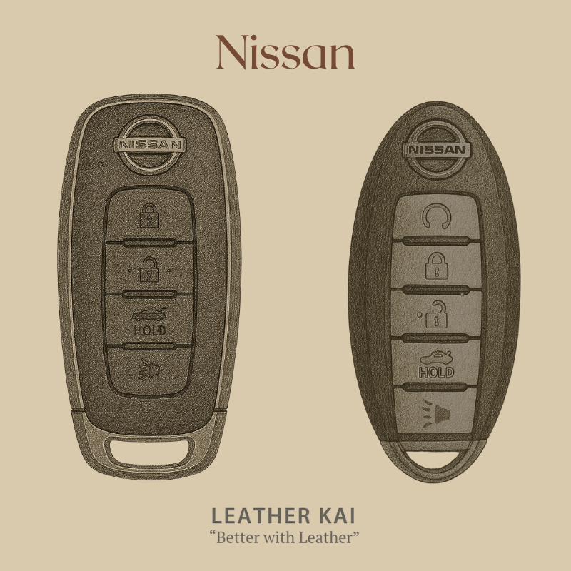 Róda for Nissan is a full-cover, fitted, and made-to-order key fob cover, designed to fit the key fob perfectly according to the car type, number of buttons and styles.